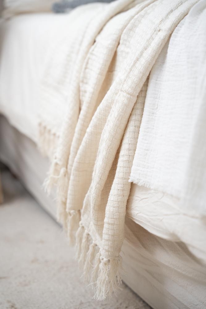 100% Algodón - Con texturas y terminación en flecos - Medida 125 x 150 - Importada de India