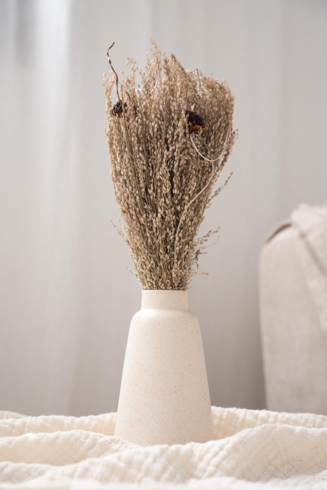 Decoracion Floral Natural en Jarron de Ceramica - Tamaño 35cm - Dos Colores disponibles