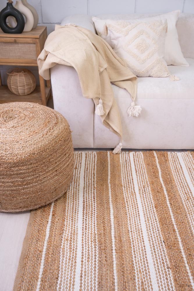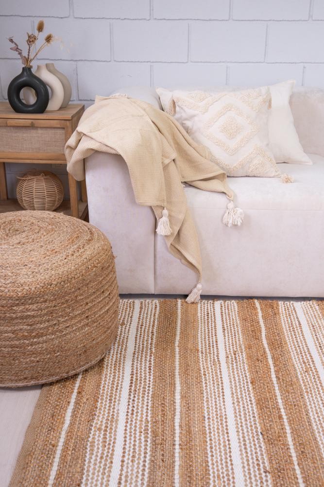 60% Yute natural 30% Lana 10% Algodon - Varias medidas disponibles - Trenzado tipo artesanal - Importada de India