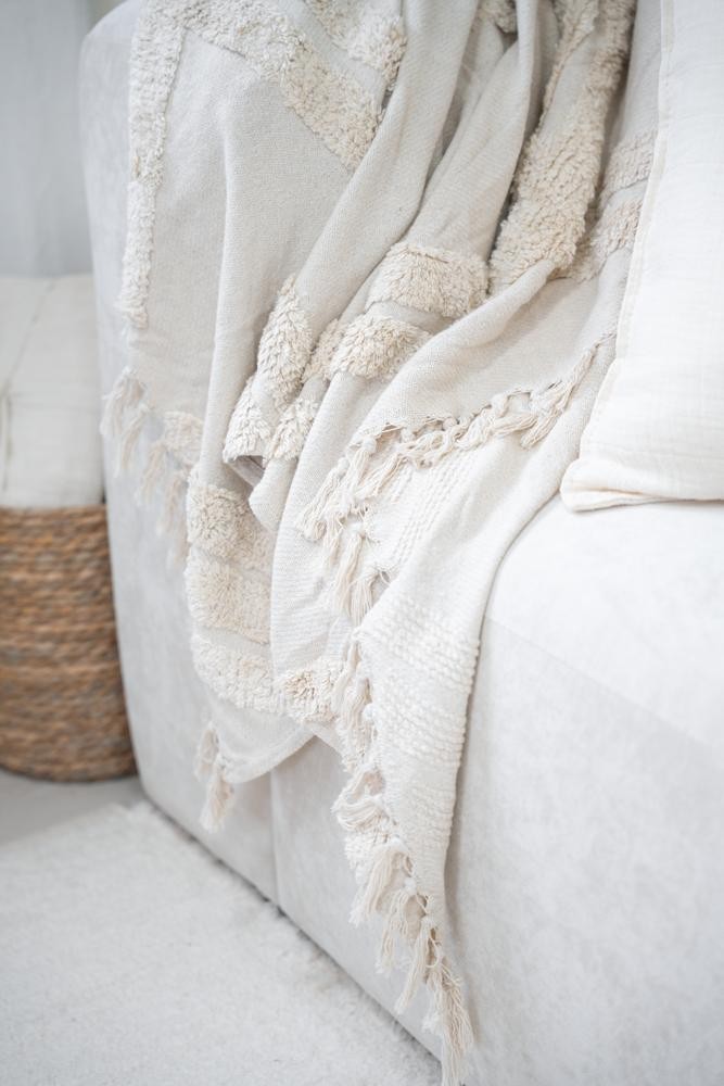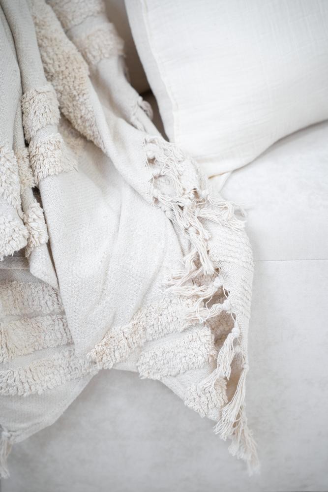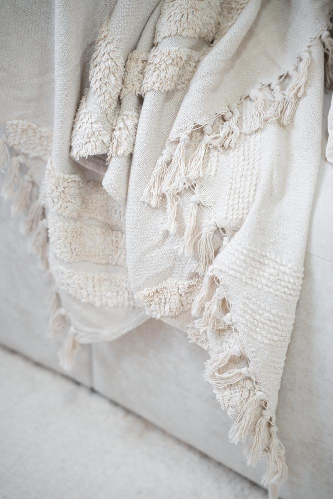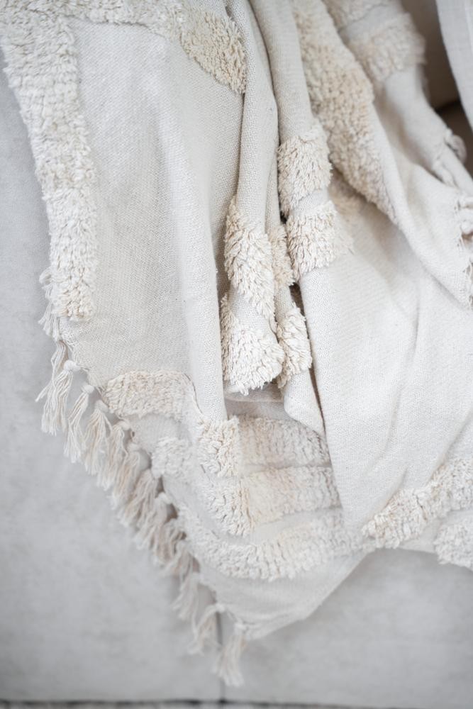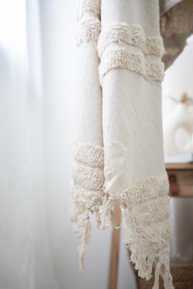 100% Algodón - Con texturas y terminación en flecos - Medida 125 x 150 - Importada de India