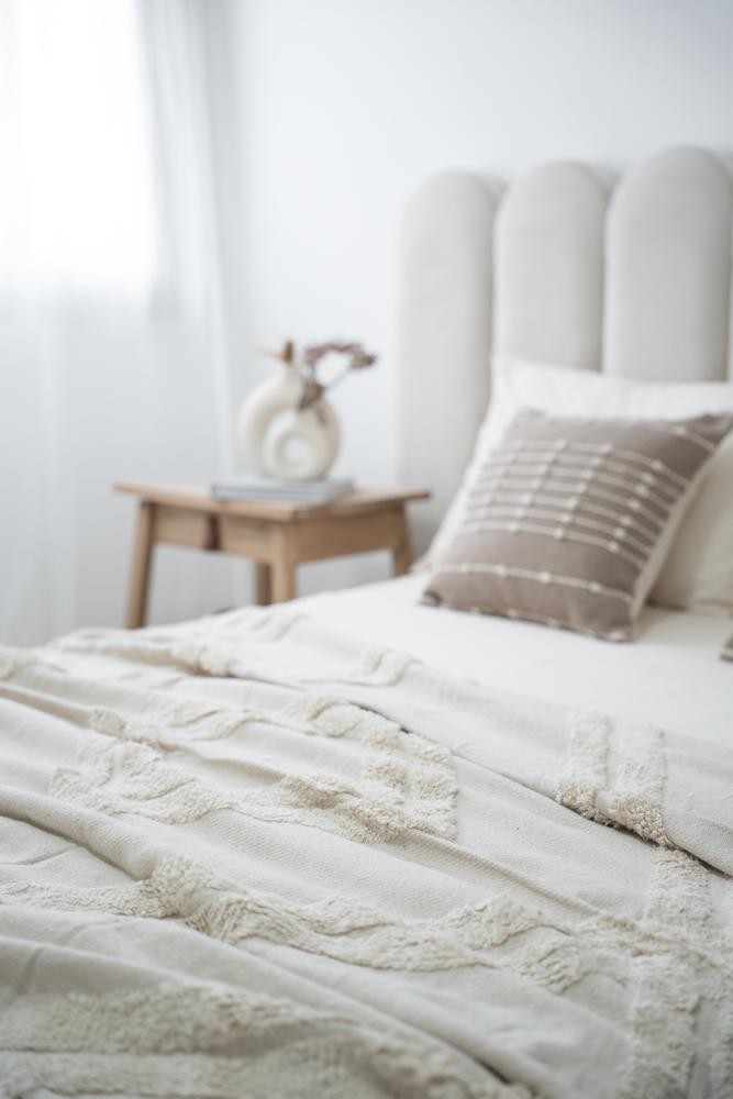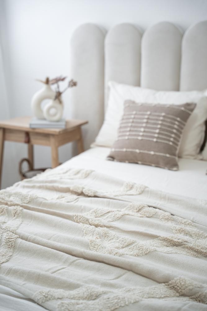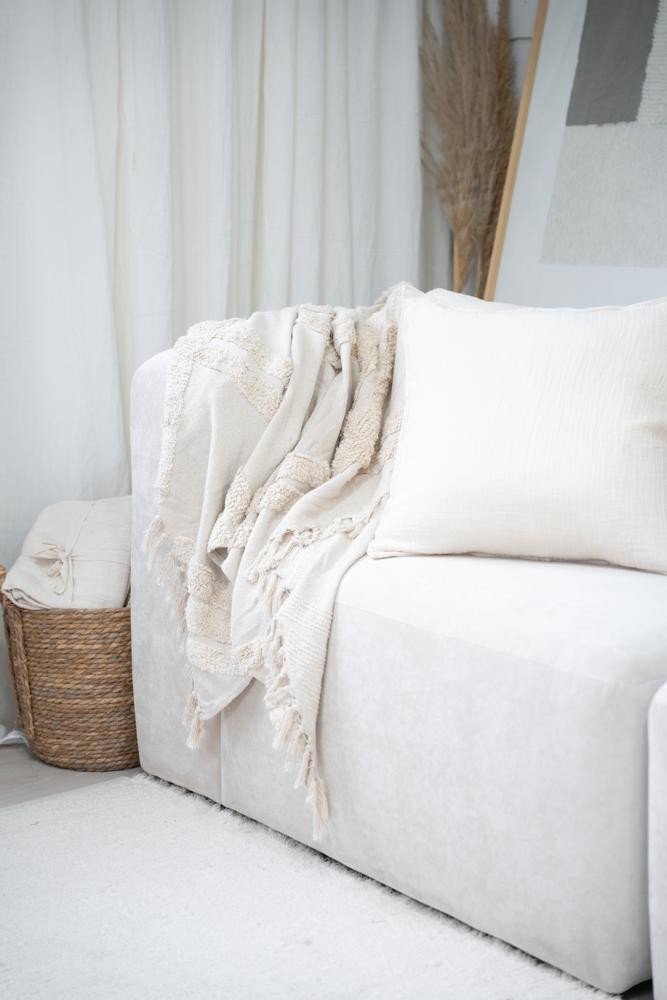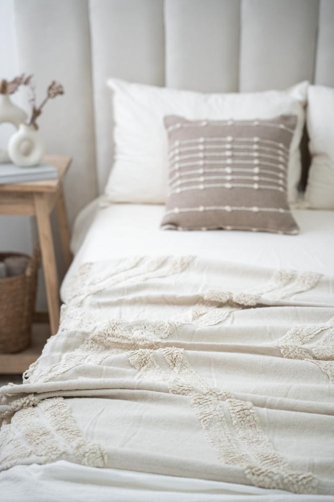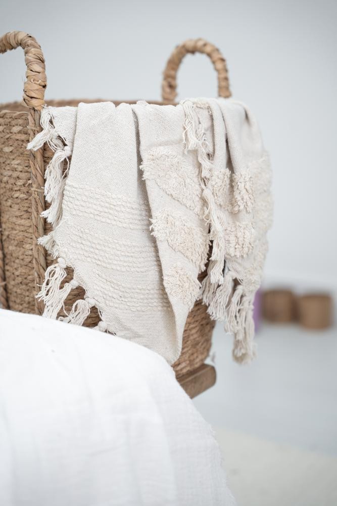 100% Algodón - Con texturas y terminación en flecos - Medida 125 x 150 - Importada de India