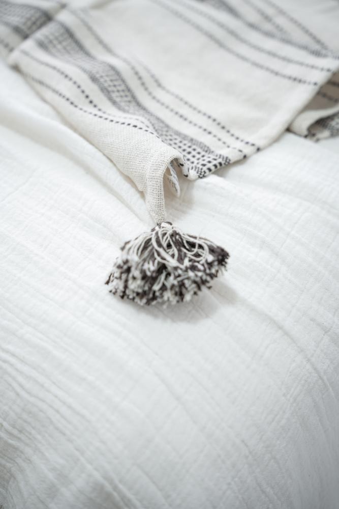 100% Algodón - Con texturas y terminación en flecos - Medida 125 x 150 - Importada de India
