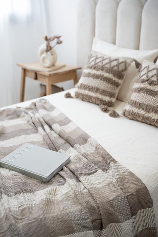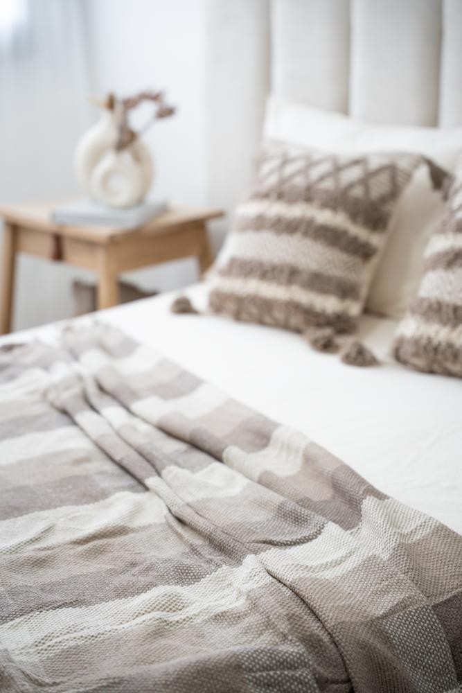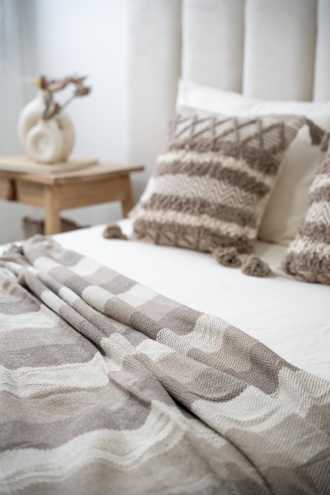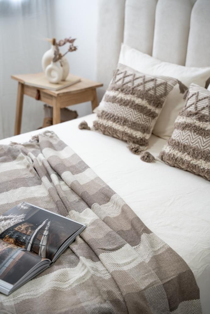100% Algodón - Con texturas y terminación en flecos - Medida 125 x 150 - Importada de India